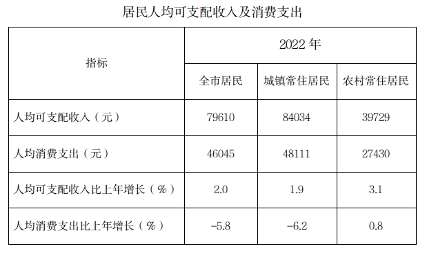 上海2022年居民人均可支配收入及消费支出